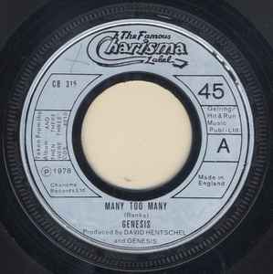 Genesis Many Too Many Charisma 1978 - 7"